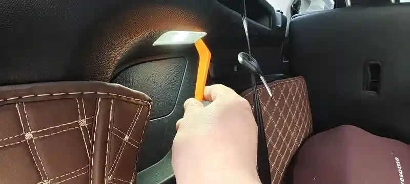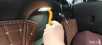 A饰板下边沿撬开一点,把灯卡上去,注意,卡的时候手拿卡子去卡,不要拿着灯去卡,否则容易损坏卡子。