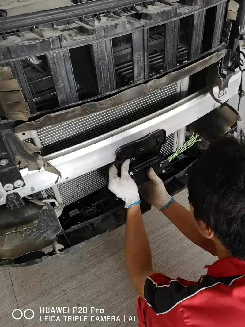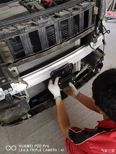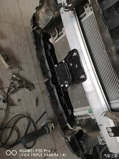 前防撞梁原厂状态就有两个小孔,就是固定这个微波雷达用的