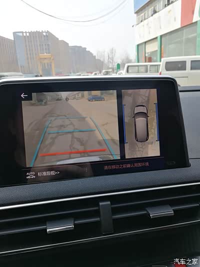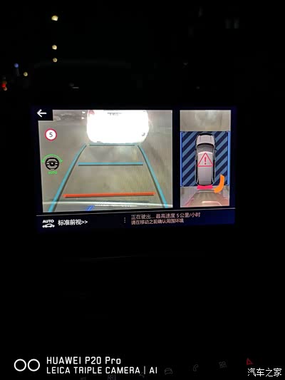 这是自动泊车的自动驶出模式,不知道为啥会拍成这样,其实画面还是很清晰的,方向盘自己会打角度,用脚控制刹车就行,这个没什么好说的,我开了后又有好多豪华版车主去找黑牛开过了,他们应该也已经发过帖子了