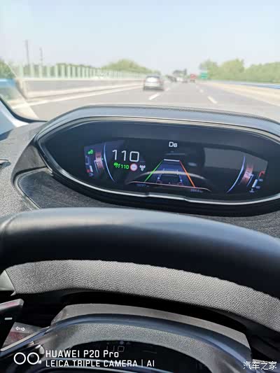 这个就是自适应巡航,刚刚打开,这时候车道刚好偏离,方向盘自动修正,仪表盘上的两根绿线一边变成桔色。有一点要说的是,这个方向盘自动修正车道如果检测到你的手一直不放在方向盘上只会帮你修正5次,5次后你还不扶方向盘他就不再帮你修正了,还有在你变道时他也会帮你修正,但是他的力量肯定没有你的大,你打转向变道的话他才不会修正,这个挺好。