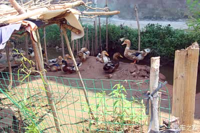 村民在空地间开辟出个鸭舍,喂养些家禽。