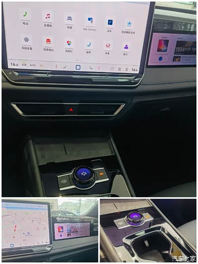 我先进去二排,让人眼前一亮的是二排中央凸起明显减少很多,中间位置的乘坐舒适性得以提升很多,车内空间明显更大了,二排也配有中央扶手。中控台对称式设计简洁明了,大尺寸的悬浮式中控屏搭配全液晶仪表盘,科技感十足,信息读取更加便捷,算上副驾驶位和一个旋钮屏幕一共有四块显示屏,妥妥的比一般电车还更前卫科技。座椅皮质包裹,填充物柔软适中,标配通风加热,高配还有座椅按摩,提供了良好的乘坐舒适性。全景大天窗,更是视野开阔,令人神清气爽!