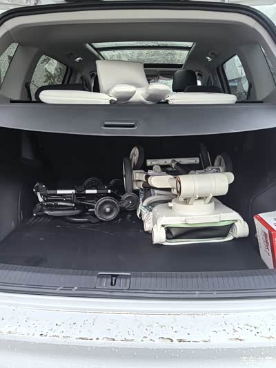 一个字“宽敞”。先说一下前排空间,体型小的不做比较,说一下体型大坐在驾驶位的效果,182/170,调整到适合位置后,头部大概还有一拳多,对应的后排距离驾驶位也有一拳多的空间,很够用。再说一下后排空间,安排一个儿童安全座椅后,还可以坐两个身材适中的成年人,且不显得拥挤。最后说一下后备箱空间,在同级别SUV中算是最能装的,儿童推车放两个,再放一个16寸的行李箱,再放两箱饮料矿泉水,仍旧还有一些空余空间。