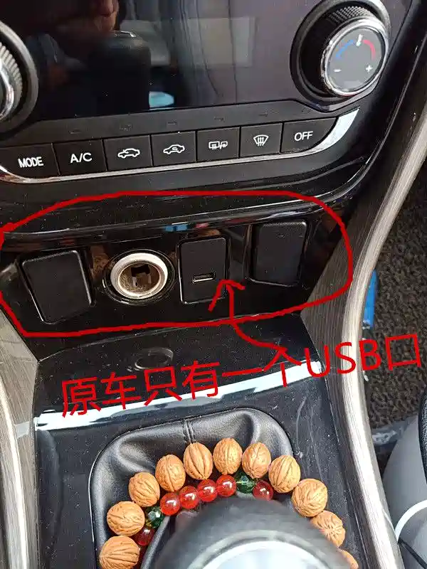 小五买了好几年了,以前总是赶脚(感觉)车上只有一个USB口实在是太少了。当想要听歌时,又导不了航,导航时又听不了歌。开蓝牙嘛又要切换,麻烦!于是就在某宝上购买各种转接头。整来整去,搞的中控台总是一大堆。实在是影响美观。