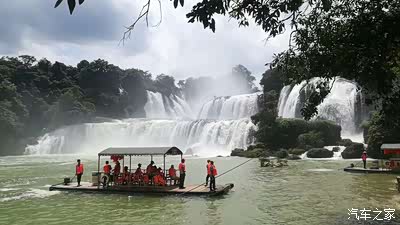 途经德天大瀑布,此时瀑布水量正丰沛,看上去很是壮观,对面的越南小贩向游人兜售着越南的香烟、零食