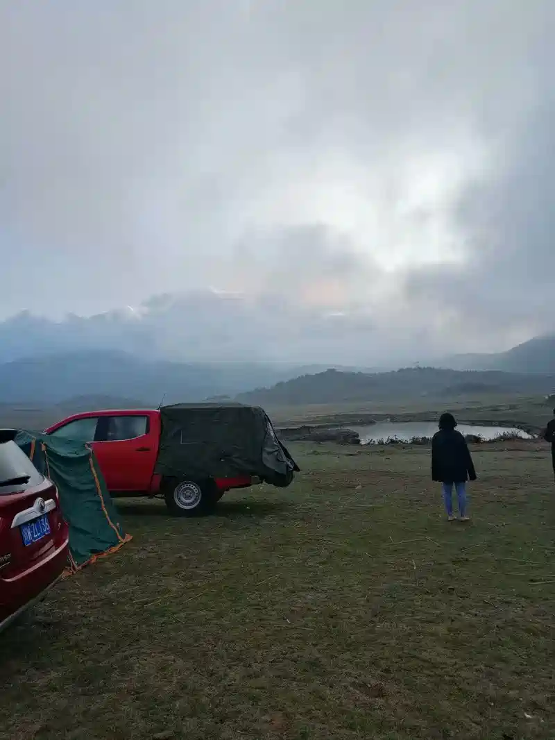 晚上宿营普者黑一个房车营地、30元钱,营地里提供热水淋浴、卫生间、为房车提供加水、充电服务,也可以为自驾游的游客通过帐篷住宿