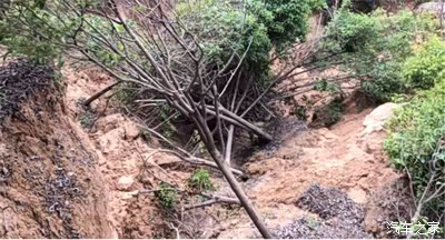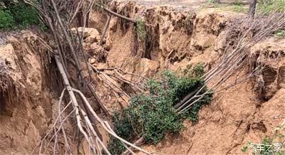 这条暴雨冲出来的深沟一直延伸进了村。不知这地儿在古时候是否是条河沟?或有些河沟本就是在这种暴雨的侵蚀下形成的?