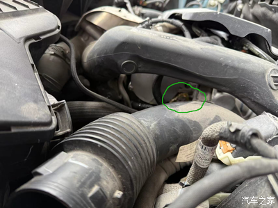 管口拆开,很快就放空了,放下的防冻液,颜色有些混,不全是绿色的