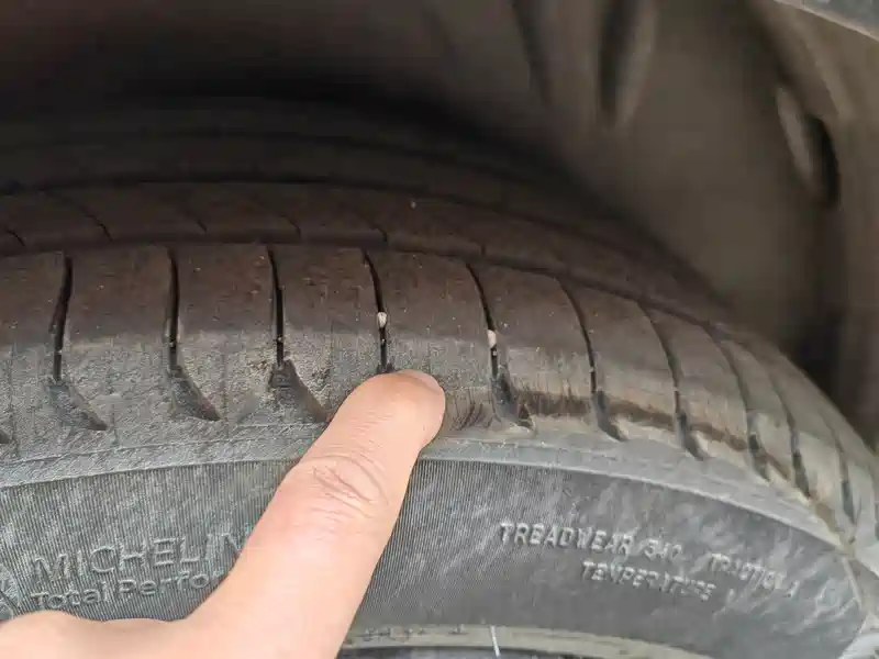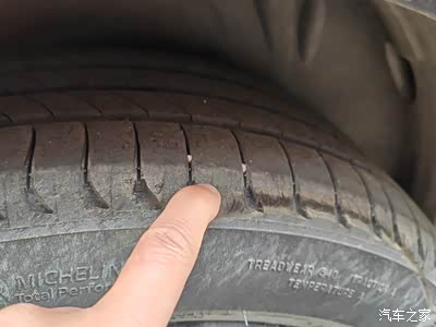 今天上午有点时间空闲,想着检查下天逸的四个轮胎情况,因为前几天在车友群看到车友也是无意间检查轮胎发现轮胎侧面胎都不知道怎么被刮破了一点点胎皮了,像车友这种情况不太严重的还好,要是碰到严重的早发现早处理,毕竟轮胎是安全行驶的一个重要零部件,于是我也看看磨损程度,有没有破裂,毕竟我经常回老家农村,路的二边都是被下雨天水流下来的小石头,小石头也会嵌入轮胎的导水槽里面,我的天逸已经开了快四年了,天逸原配的是米其林轮胎,米其林的轮胎静音舒适性还可以的,当然耐磨性一般,毕竟静音和耐磨不能够兼得,可惜的是我21款减配轮胎了,原配的是225/50R18的轮胎,之前的老款配置的是235/50 R19的轮胎,查看我的磨损程度还好,离那个限位的位置还早,也许是我的车开的不多,到现在才二万四千多公里,看到轮胎导水槽里面还是夹了小石子,而且有一个轮胎水槽里面钻进去一个小铁丝了,还好是很小的,农村的石子路就是容易卡石子,于是把所以小石头都清理掉。毕竟这些石头会影响抓地力,会增加刹车距离和行车安全。