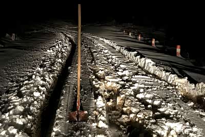折腾了半个小时左右,仍然没有脱困,我决定,倒车,找一片雪薄的地方掉头,好不容易掉了头,可惜返回的那个坡角度更大.这时候得有工具,好在前方500不到有几户人家,现在已经是晚上近7点了,我敲门,借了把板锨,铲出两个车辙,直接铲到路面,6千转红区产生的牵引力还是可以的。