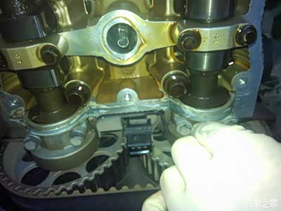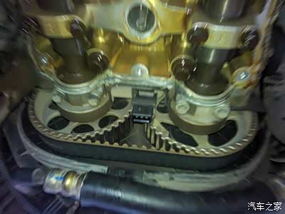 这回能详细的观察到正时皮带了,我仔细看看没有问题,不放心找修理工来看看,打着手电把头伸到底下仔细看了,没有裂缝和问题,跑8万毫无压力。在修理厂弄这就有个好处,不放心或者解决不了的问题,找不到的工具都可以随要随到,这也是我每次都开到车行自己动手的主要原因 吧
