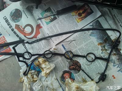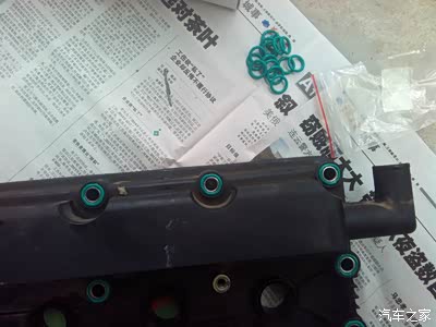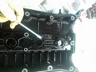 拆下的气门盖,上面的胶已经不均匀了![]()