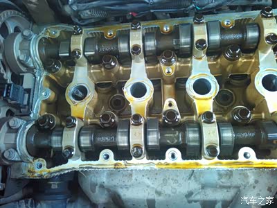 拆下气门盖了,发动机内部一览无遗,保护的还算干净吧,没有什么油泥对吧?
