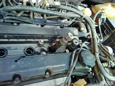 这张照片我要插一句,大家仔细看看一缸火花塞洞里有点不一样吧,那是我拔缸线时,因为旧缸线老化了,用力一拔把里面的金属心断在这里了,这也就是我后面换缸线的原因![]()