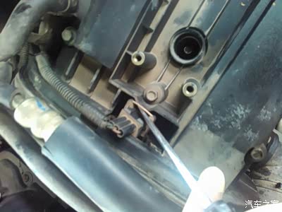 接着用螺钉刀撬着钢丝拔下曲轴位置传感器,很轻松,没难度