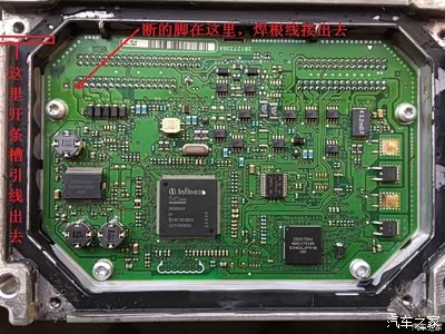 俗话说的好:不作不会死!这不我没事干想看看ECU针脚是怎么排列的,拔了插头一看怎么有个脚是空的,翻过插头一看针脚在插头上插着呢,这下完了,电脑怕是废了。把断了的针脚细心的插回ECU插座小孔里,接电瓶,插钥匙打火,晕哦,只有启动机工作声,就是不来火。试了几把还是一样。没辙上网搜了下二手ECU 700元。知道有卖就好办,自己正好拆开ECU看看内部什么样,顺便飞根线出来试试能不能工作。下面上作业: