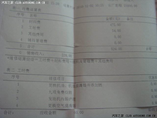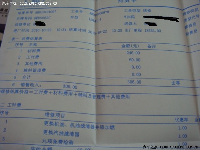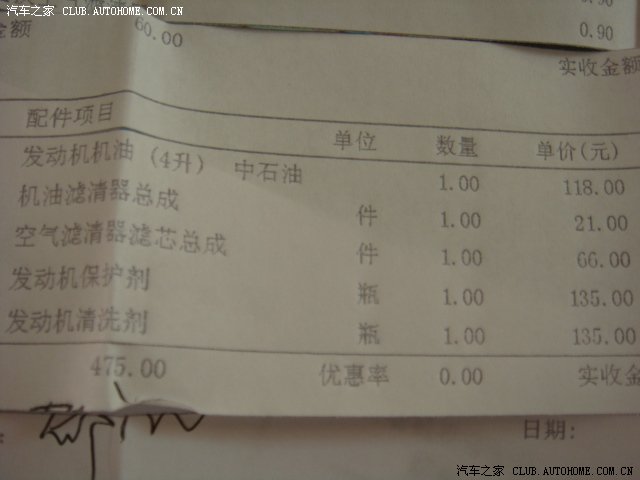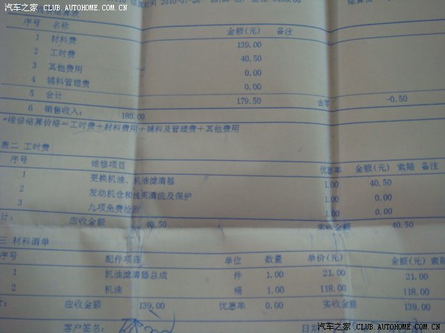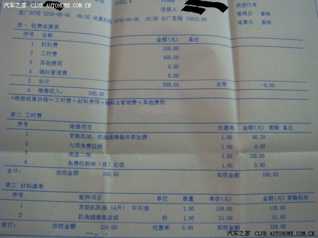 下面是保养单据,想看看具体费用的构成的可以研究一下。各地应该不一样的吧。还是全国统一价,我没有研究过!