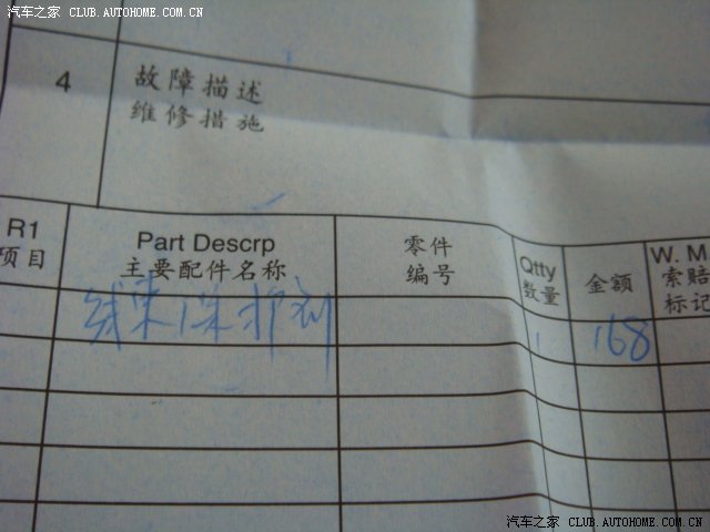 10月22日迎来四保,里程18113KM。更换了汽油滤清器等等。RMB100多元。总共花费RMB306元。4S叫我换空调格,让我咔嚓了,因为现在冬天还开什么空调,等夏天到了再弄吧。其余的应该是工时费。