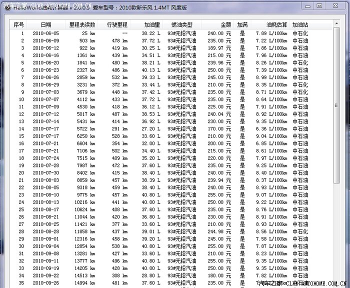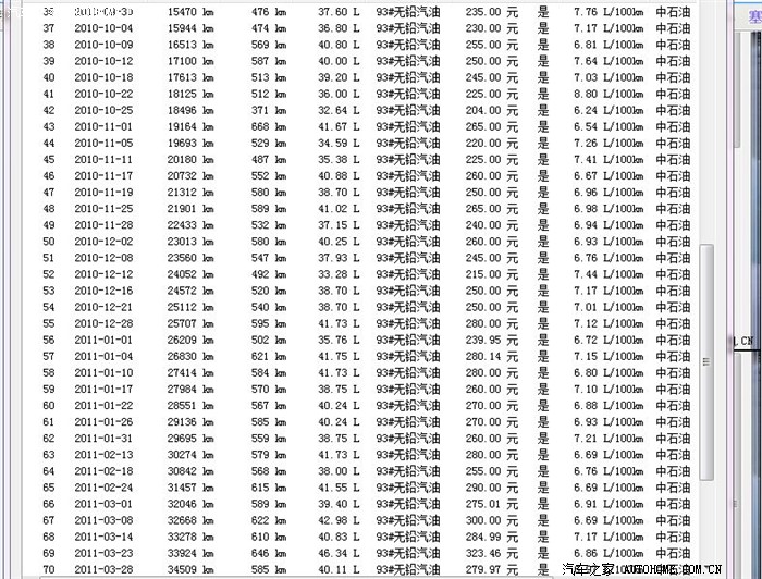 下面是油耗统计抓图: