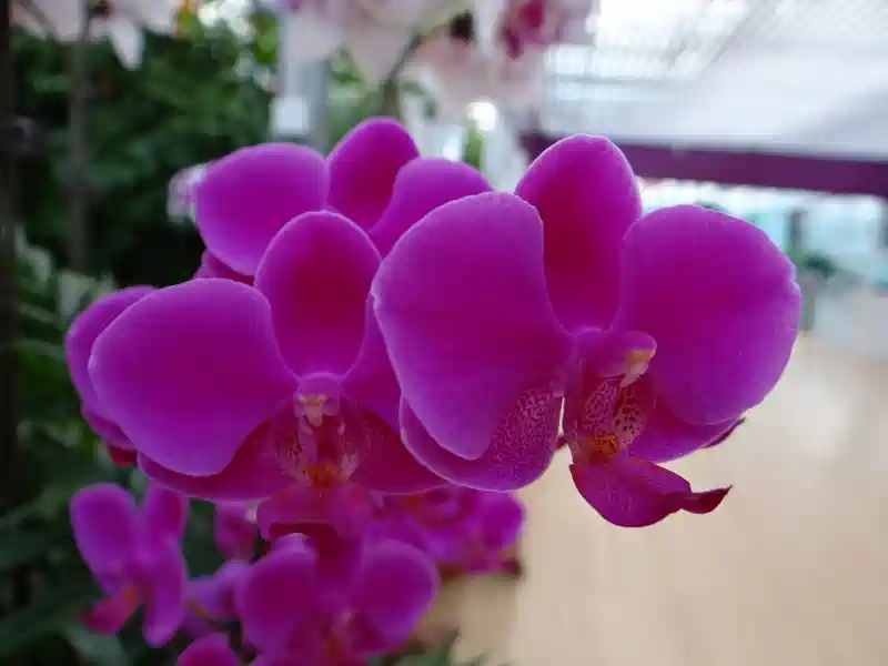 兰花馆内的兰花经过园艺师的精心培育,每一棵都开得娇艳欲滴。它们颜色不同,红色、黄色、紫色、白色等等,五颜六色,看着十分喜庆。样子也不一样,最常见要数类似于蝴蝶一样的蝴蝶兰。这里的兰花每天都在这里展览,游客如果细化的话还可以到兰花超市去选购。现在的生活,衣食无忧,大家在解决了温饱以后,会追求更高层次的精神文化需要,所以很多游客在参观完了农业公园之后,都会选购一盆中意的兰花作为纪念品带回家。尤其是在春节即将到来之际,带一盆兰花回家,更会为节日增添一丝温馨。