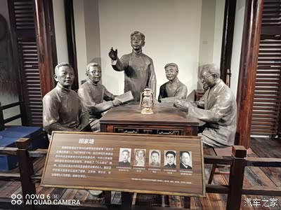 开放的序厅——“红馆”雕塑群,面积约为8000平方米。整个区域运用明清红庙旧址的建筑元素解构并艺术塑造的手法,由红坊、红门、红窗、红墙、红柱、红梁和希望之门7座红色文化雕塑景观组成。