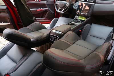 领克03前排配置电动座椅,可以根据每个人的驾驶/乘坐需要轻松调到让自己舒服的坐姿。不仅如此,在一次停车这车内休息的时候,我发现靠背往后仰一直可以调到靠背放在后排座椅上,整个座椅就变成了一个平躺的大沙发,躺在上面休息非常舒服!