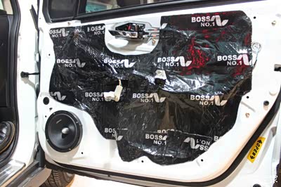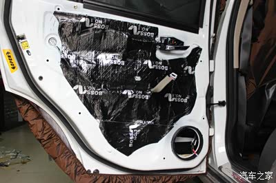 左后门双层止震板安装完毕,门内层贴的是横条止震板