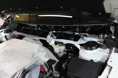 由于锋驭的车身相对较大,所以发动机部位的U型槽空间也相对偏大,此部位做隔音是减少发动机部位噪音传递至驾驶室内