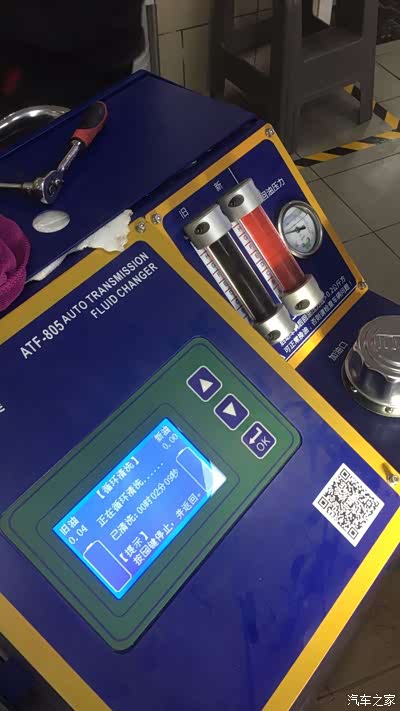 清洗完成之后就是用新机油循环清洗,也就是拿新油继续冲刷变速箱内部。