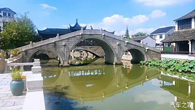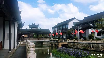 驱车直接到了巴城老街碑坊,这里有一个免费的停车场,很方便。因为是国庆前的一天,车不是特别多,所以停放也很方便。如果遇上节假日,建议自驾来的朋友走另外一个方向,巴城实验小学那边方向的入口处,那里空地多,停车更方便。一路上,都是典型的 江南 水乡的建筑特色,白墙灰瓦。今天的阳光太过灿烂,亮得刺眼,但是看着蓝天白云,心情还是很不错的。