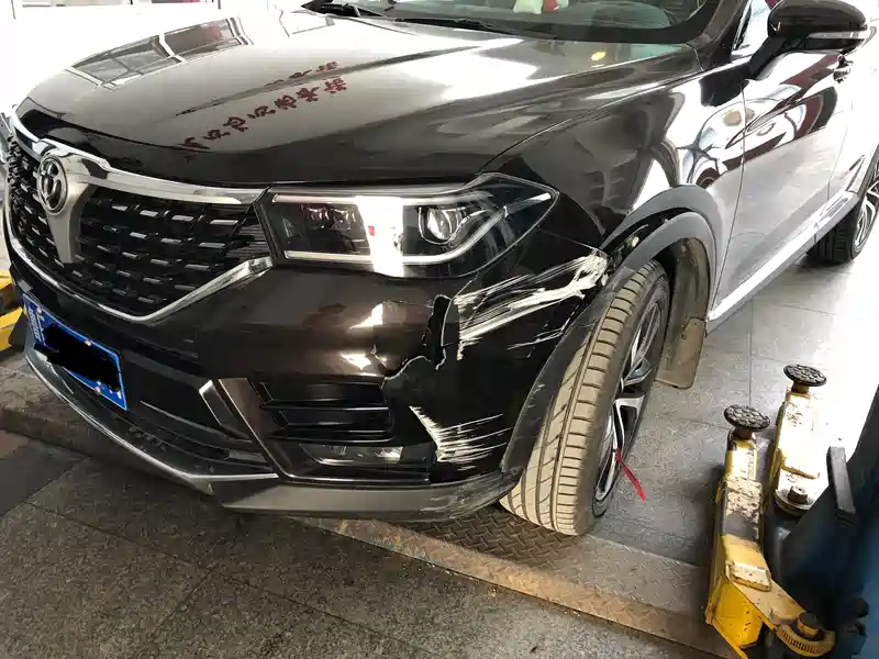 先发张照片让你们笑笑。买车一个月,在小区一个下坡路上倒车,一直往前溜车,一脚油门下去剐着旁边防护栏的石头墩了,心疼,前保险杠,轮眉,左大灯,左雾灯,5770元。