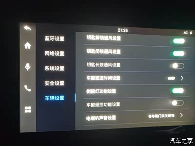 车辆设置里面可以自由选择设置车辆灯光通风功能