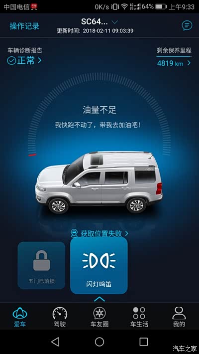 再APP上的车主手册 输入车架号就可以下载电子车主手册,上面就是一本电子说明书,碰到上面问题基本可以在上面找到。