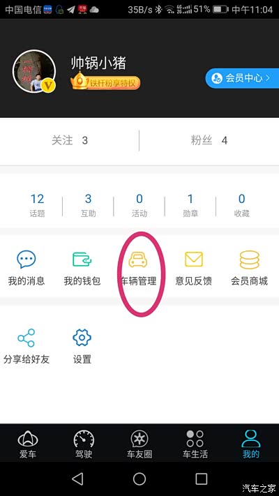 扫码下载下来的就是长安欧尚APP,没有注册会员的可以用购车登记的手机注册下认证成为长安会员,然后登入就会出现这个界面,点击屏幕下面右下角的(我的),然后点击车辆管理,