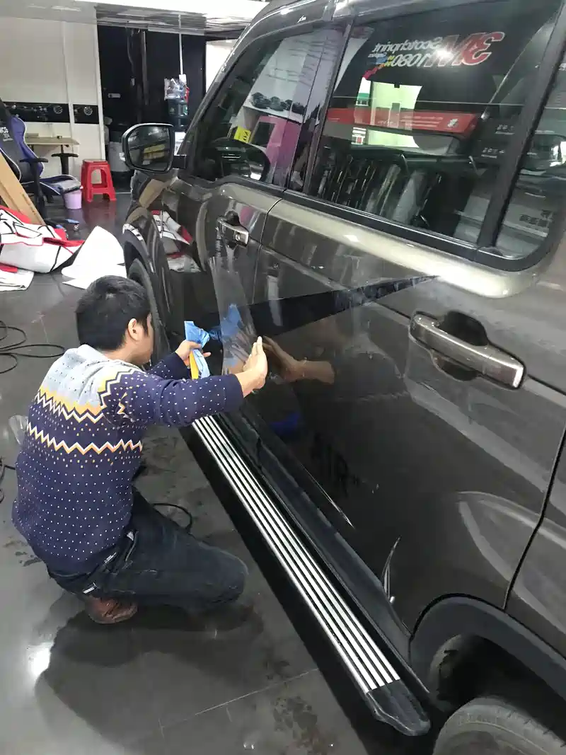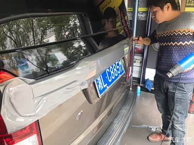 周末闲着没事,带着儿子去改色贴膜点:贴耐克