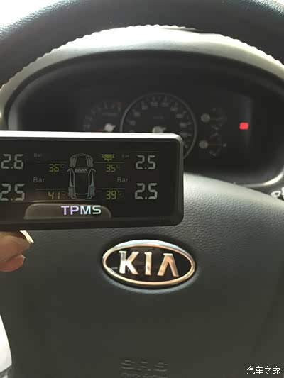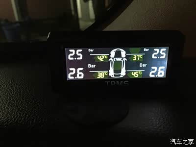 装了这个东西后,每次上下车都拿来看看,怕轮胎漏气都不知道。胎压跟温度有关~不断变化,温度低胎压低,车开久了温度高,胎压也上来了,最高测到是2.6,最低2.3...浮动在2.3~2.6之间,不知胎压装置是否有问题