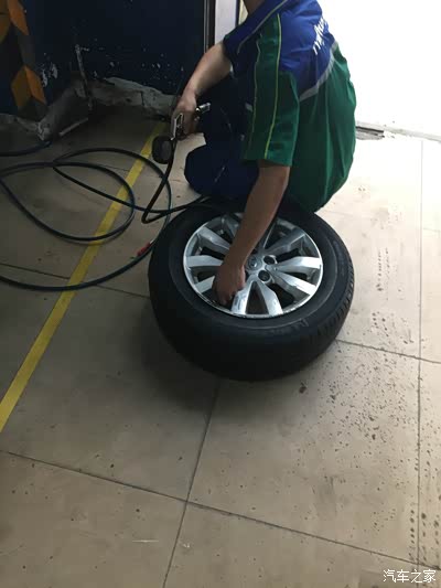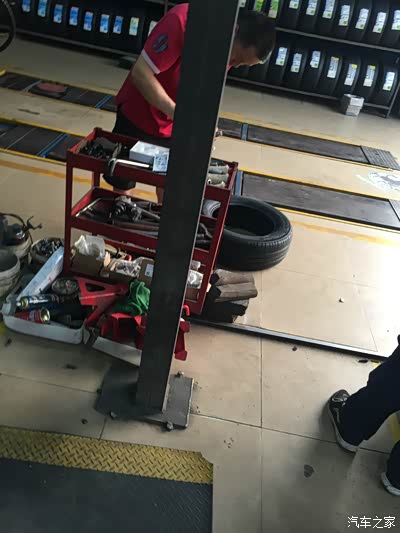 一个卸旧胎,两个除锈涂防锈,一个装胎压装置,一个四轮定位,速度好快,换新轮胎、除锈、胎压装好了,6点半了,轮胎店关门了,老板还让我填了资料,说1年有回访,还说两年内每隔5000公里可以去他们店里检查轮胎,我说到时候来检查可以在你们店里前后轮对换免费吗?老板说免费