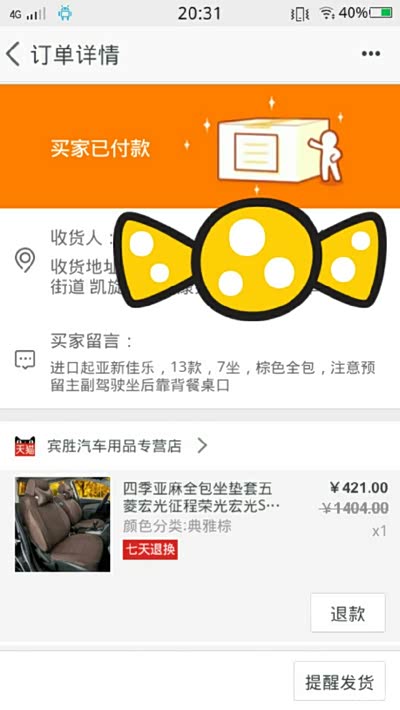 定做的座套,店家说要7个工作日才能做好再发货,好吧,我等,不急,车还不知道在哪呢!重点要说一下这个座套,为什么真皮还要再包一层亚麻套?为什么不买坐垫?就因为我有洁癖,就这么简单,不想磨损,以防万一,就要无死角的保护。