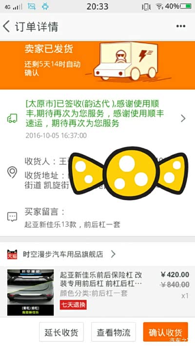 已经签收的前后保险杠,老婆也要开车,技术只能呵呵,感觉还是很有必要的,一直没拿回家,物件太大了,回家占地方,暂放隔壁小区快递点了。