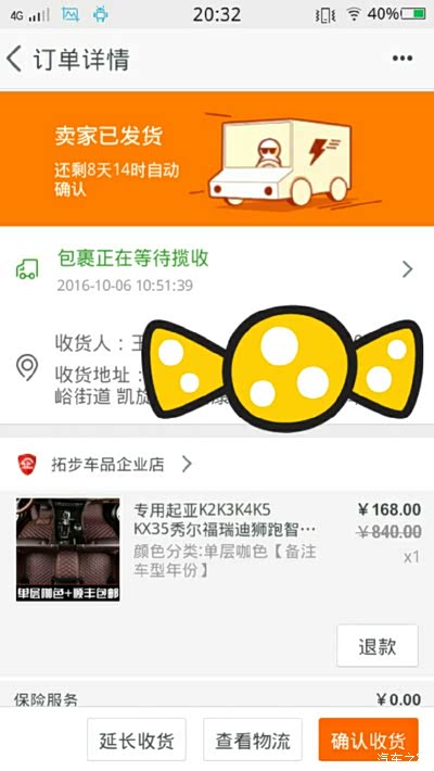 店里送了全车膜,包括前挡膜,也送脚垫以及把套啊不值钱的玩意,看了下店里送的脚垫,贴服度不高,果断白给也不要,还是上网定制。