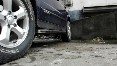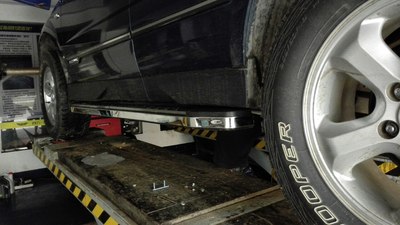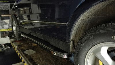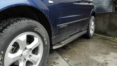 由于改装了加强弹簧和越野轮胎,底盘升高了,为上下车方便,在淘宝网购买安装了上下车踏板。本来看中的是自动踏板,价格在6000~8000元,找了找去没有双龙爱腾专用的。担心不配套,安装无效果反而揪心。简单最好是硬道理,还是安装了固定的踏板。与底盘中间同样高,不影响穿越。只是走复杂路况对角线有点不利,慢点就是了。![]()