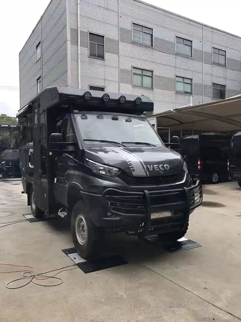 前段时间发了一个南京依维柯欧胜四驱越野工程车,看到全国各地的车友都比较感兴趣,今天给大家带来一款更火爆的车型,依维柯欧胜四驱越野房车,真的是太霸气了,这款房车改的是非常的完美,有独立的卫生间,独立的餐桌,1张宽1.8米的双人床,独立的洗衣机,洗手盆,储物柜,微波炉,全车配备电源以及做饭用品,野外露营出去旅游都非常的使用,此车辆同步欧洲性能新一代F1C-3.0T发动机峰值功率可达132KW峰值扭矩可达430N.M意大利FPT技术6速手动变速箱,真四驱三把锁,宽体轻客四驱标准,非承载式越野专用底盘,高强度车身,20处加强整车刚度全面提升,军标级别分动器,4H/4HL/N/4L四挡,电控换挡,可进行换挡,140KW/最高车速前,中,后三把差速锁,超强脱困能力,70%爬坡能力,整车安全涉水深度可达1000mm,集中通气口可达1100mm底盘电器不见防尘防水IP67,加高排气尾管,涉水时可在水中停车重新启动,全车LED 高亮度大灯。近光灯亮度提升88%远光灯亮度提升50%宽视野补盲镜,消除视野盲区,取力端口全功率段夹心取力,HDC陡坡缓降功能。智能辅助驾驶员低速下坡,前绞盘12000磅,双前拖钩68000N,后救援拖钩50000N,车顶行李载重300KG,尾门结构加强可安装后爬梯备胎,7时越野专用仪表,13时中控大屏。电子手刹,一键驻车,而且越野性能特别完美,性价比特别高的一款四驱房车。