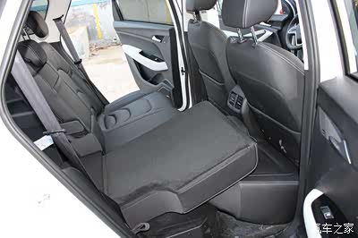 宝骏530承袭了560的2750mm轴距,在前后和行李箱空间上非常宽裕。本人身高178cm,前排不用说,后排头部和膝部空间坐好后都有很大空间。尤其是后排地板平整,满载3人都不觉得拥挤,同时后排座椅带有中央扶手,里外都是皮质包裹,看的出厂家对530在细节上下的功夫。后排座椅支持4/6比例放倒,加上后排坐垫可以拉伸出来用于椅背完全放平,整个椅背和行李箱地板连成一个整体,方便大件物品存放。但没中不足就是行李箱地板和尾门门槛有落差,拿取物品还是不太方便,包括尾门开启高度超过了185cm,应该设立独立拉绳方便关闭。总之空间上530是要给个高分的。