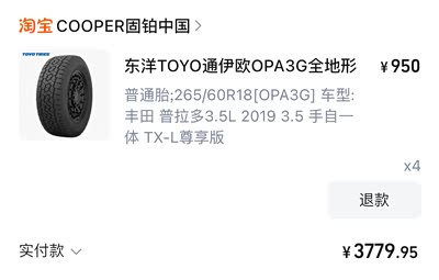目前13万公里,5年车龄,选3个月AT胎,固铂看了,倍耐力看了,米其林看了,百路驰的KO2和KO3也看了。最终入手东洋OPA3G,原厂数据265 60 18,新款雷克萨斯GX550原厂配这个胎,胎纹侧面看比原厂的有感觉一点。