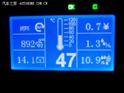 水温47度了,发动机状态变成闭环了,油耗也显示1.3了,