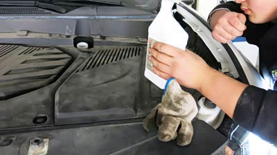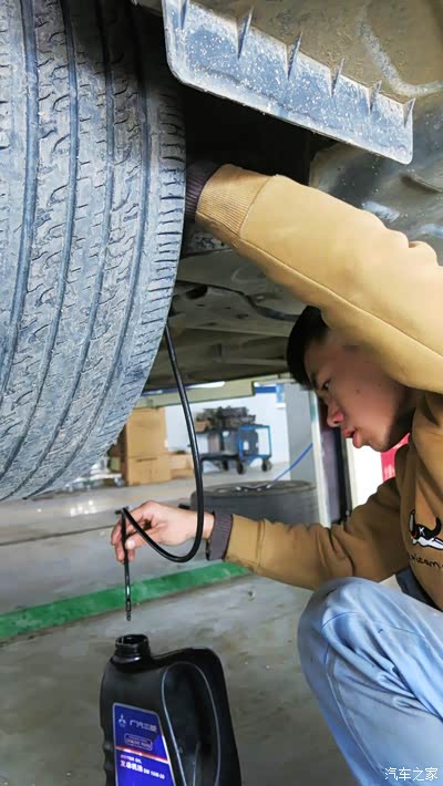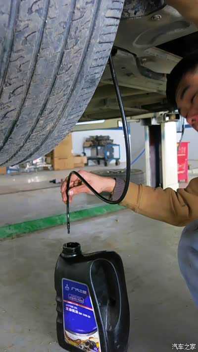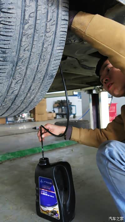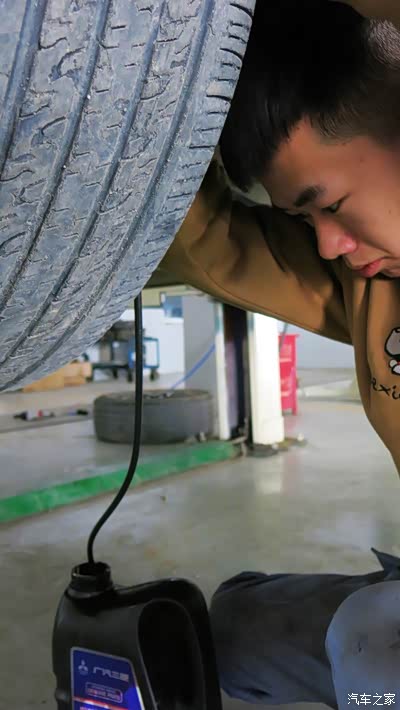 更换刹车油需要三个师傅进行配合操作,一个在车头灌注,一个在驾驶室不停的踩刹车,还有一个在车底下接放出来的旧刹车油。在灌的过程中需要停下来,等待通过踩刹车放出去旧刹车油腾出来的空间,才能继续灌入新刹车油。