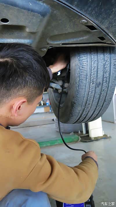 这是在检查悬挂减震系统,看看有没有异常现象。