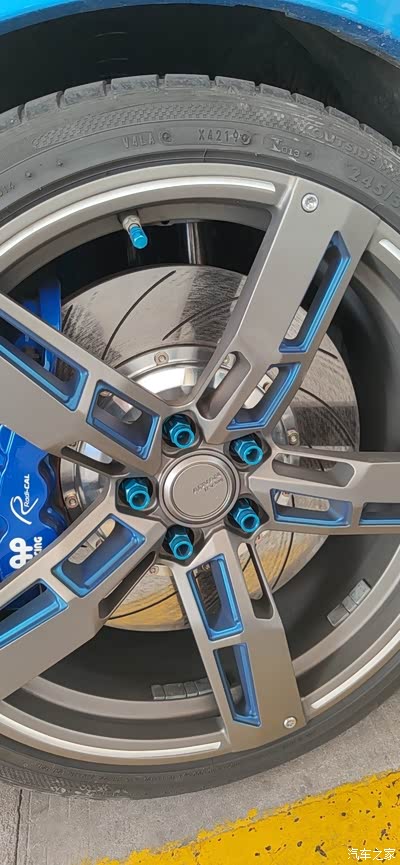特別定制的20寸单片锻造轻量化轮毂,款式选了很久,颜色配搭也跟大师研究过才定下,搭配新装的380刹车盘,视觉上肯定比之前的355盘饱满,邓禄普轮胎245/35/R20,BLOX正品的螺丝自然也少不了