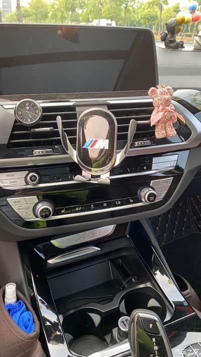 触摸自动收紧的手机架,一个月充电一次就行,手机连carplay后就可以关屏了,红灯时看看微信比较方便