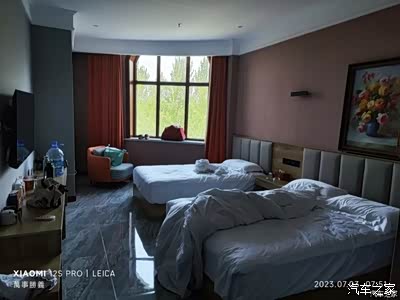 早上起来,两张床,一张1.8*2m的,一张1.2*2m的,适合一家三口。